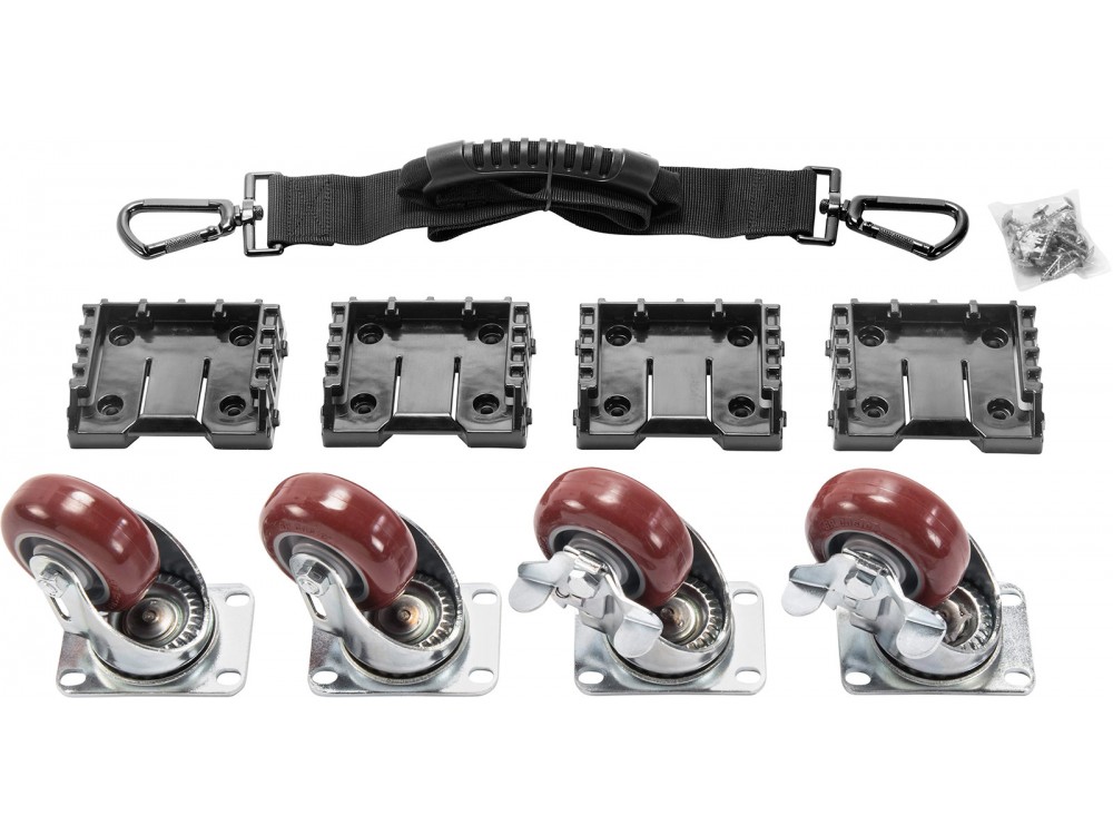 Zestaw jezdny do skrzynek Peli 0340, 0350 i 0370. Rolki z łożyskami kulowymi, obracane o 360°. Szczególnie nadają sie do szorskich powierzchni.