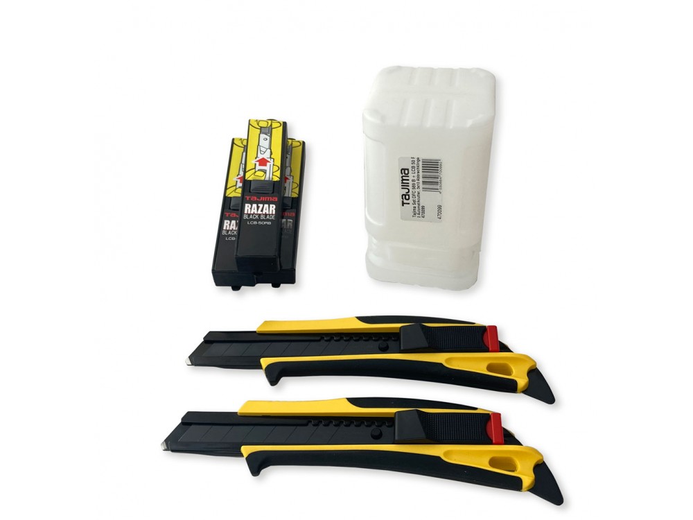2 -nożyki z bardzo ostrym 18mm czarnym ostrzem. Ostrze wykonane z najwyższej jakości stali (Premium). Oryginalny Tajima Back™-System umożliwia bezpieczną obsługę przez automatyczne cofanie ostrza.