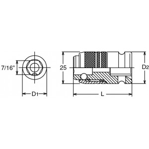 Adapter udarowy z blokadą, kwadrat 1/2” na sześciokąt 7/16”.