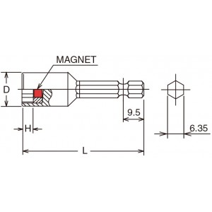 Koken 115-100 8mm, 1/4" nasadka z gotem(imbus), z magnesem