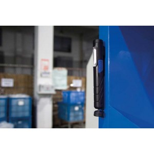 Kompaktowa latarka LED, obudowa z tworzywa, z klipsem i obrotową stopką. Zintegrowany magnes w klipsie i stopce.