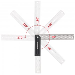 Kątownik ciesielski regulowany pod kątem 45°, 90°, 135° (180°, 225° i 270°). Trwała i odporna na ścieranie podziałka milimetrowa, gwarantuje precyzyjne pomiary. Kątownik jest składany co umożliwia łatwe przechowywanie w kieszeni. Solidna konstrukcja ze stali nierdzewnej o grubości 1 mm i szerokości 45mm, zapewnia niezawodne użytkowanie. Kątownik wykonany w technologii CNC zapewnia najwyższą jakość i precyzję, z tolerancją kąta ±0,06° (±1 mm/m).