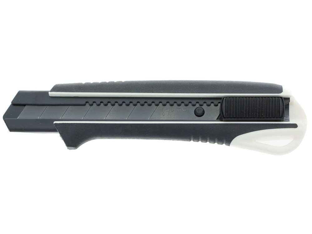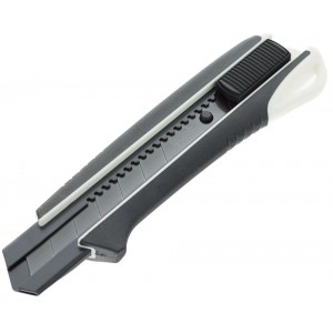 Nożyk 25 mm z metalową prowadnicą ostrza z suwakiem i z automatyczną blokadą ostrza.