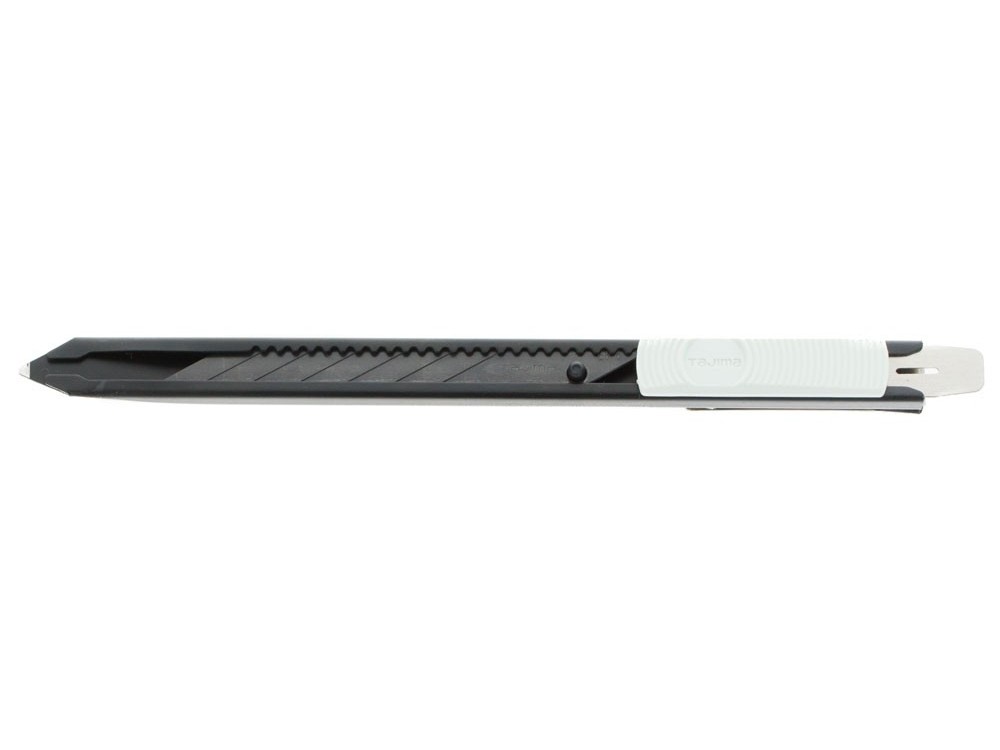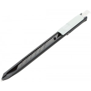 Nożyk z łamanym ostrzem 9 mm z suwakiem i z automatyczną blokadą ostrza, klips. Dodatkowe zintegrowane mocne ostrze na końcu prowadnicy z funkcją wkrętaka płaskiego lub ostrza do trasowania. Nożyk wyposażony jest w ostrze 9 mm RAZAR BLACK wyprofilowane pod kątem 30°.