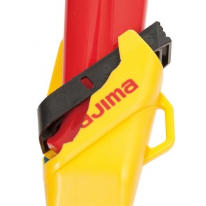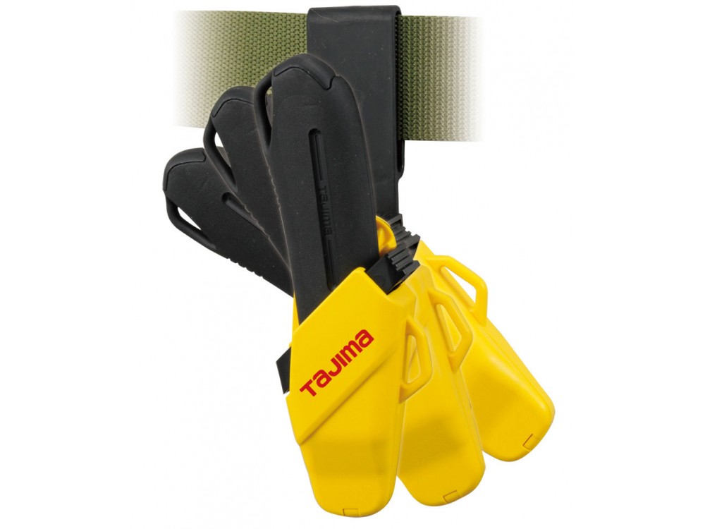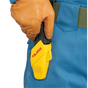 Kabura do noży marki Tajima, możliwość zawieszenia na pasku lub kieszeni spodni. Wykonany z tworzywa sztucznego. Dzięki kaburze nożyk leży bezpiecznie i jest zawsze pod ręką. Aby wyjąć nożyk z kabury należy wcisnąć przycisk zwalniający blokadę.