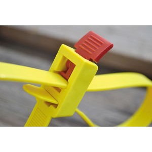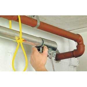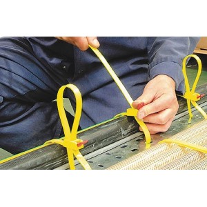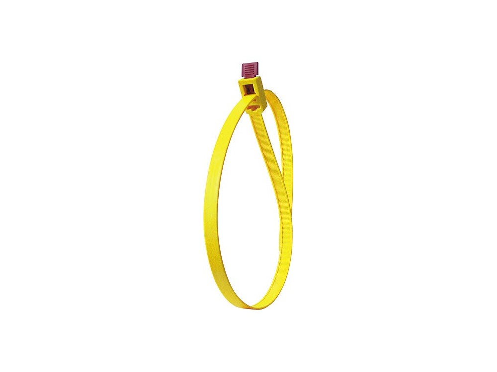 Rozpinalna opaska montażowa do wielokrotnego użytku. Opatentowany zamek "Speedy-Click" umożliwia szybkie zwalnianie opaski. Obciążenie opaski do 888 N (ok. 90 kg). Długości opaski: 750 mm. Koniec opaski można łatwo włożyć w uchwytu główcy tak, aby nie przeszkadzał. Zastosowanie: w budownictwie i przy montażu zarówno instalacji elektrycznych, jak i grzewczych, wentylacyjnych i klimatyzacyjnych, w ogrodnictwie, rolnictwie oraz instalacjach estradowych.