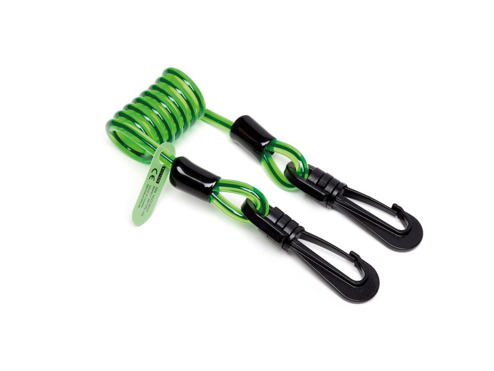 Linka z wyjątkowo wytrzymałego węża spiralnego z dwoma obrotowymi o 360° karabińczykami, które zapobiegną skręcaniu lub splątaniu linki podczas pracy.