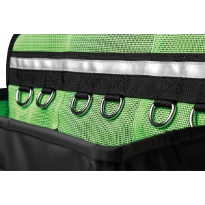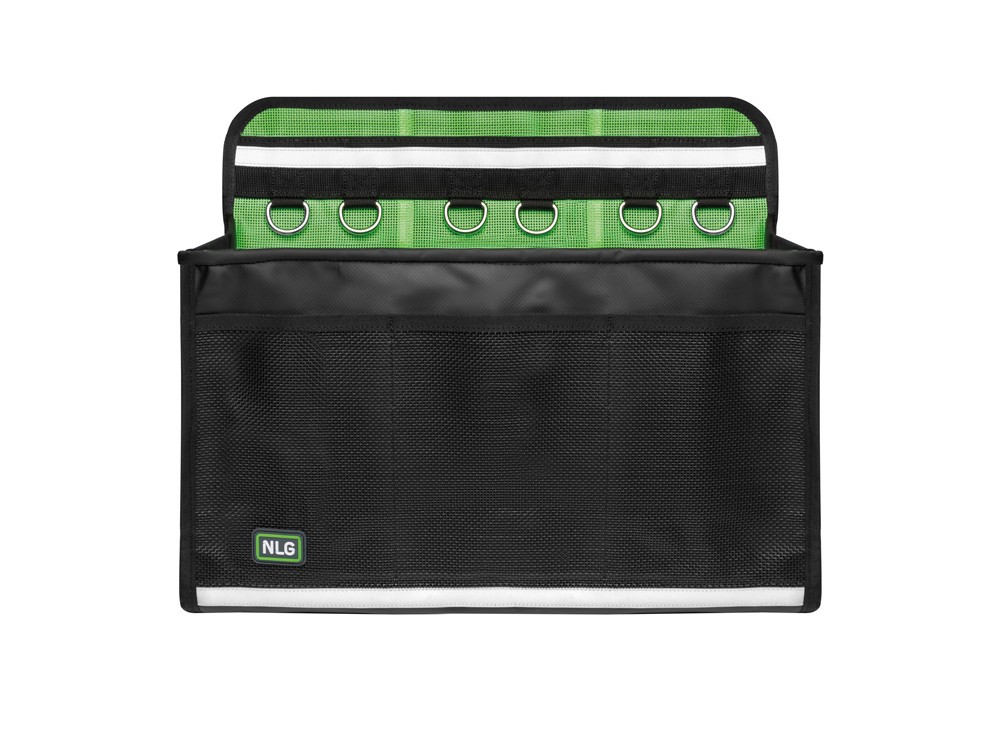 Torba narzędziowa NLG z tworzywa PVC - jest specjanie zaprojektowana dla pracowników którzy pracują na wysokościach lub podwyższonych platformach roboczych. Główna komora podzielona jest na 3 kieszenie, wyłożone odblaskową siatką. Na zewnątrz dodatkowe 4 kieszenie. Mocowanie za pomocą systemu a TriLock™ Velcro (szlufki).