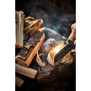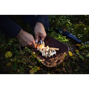 Długie i grube krzesiwo o długości 100 mm i średnicy 10 mm umożliwia krzesanie iskier przy każdej pogodzie, które osiągają temperaturę blisko 3000°C. Szczególnie nadaje się do zastosowań na grzbietach nożowych Outdoor Hultafors (OK1 i OK4), które kabury również posiadją specjalny wkład na krzesiwo. Pokazane akcesoria nie są w dostawie!!!