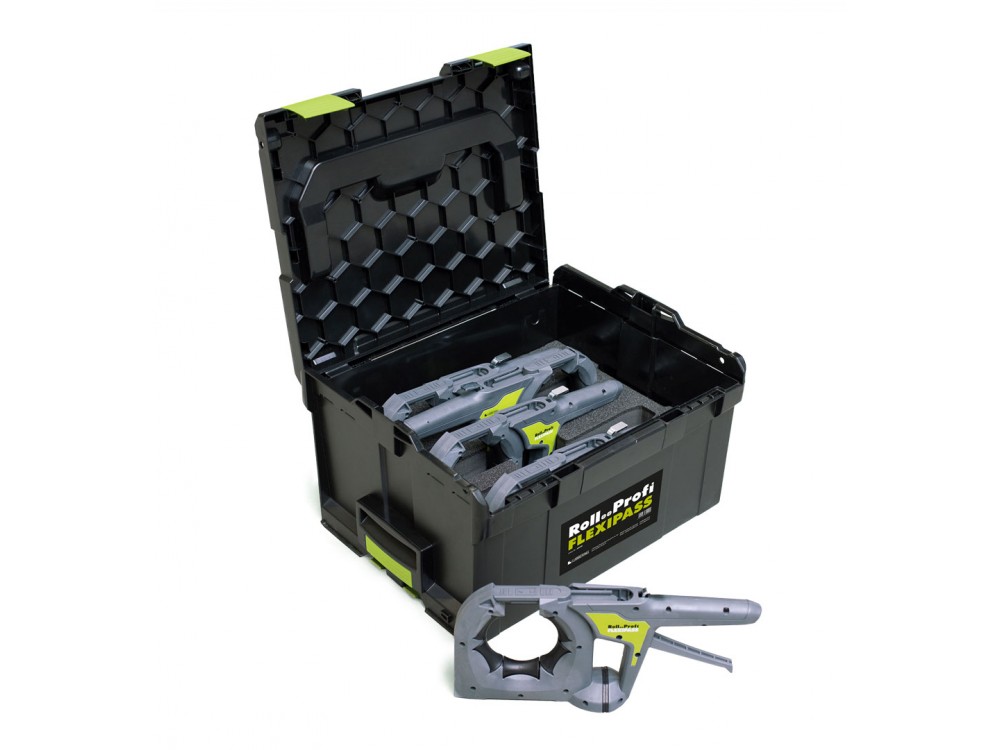 Prawie w każdym układaniu kabli uniknięcie szkód materiałowych jest najwyższym priorytetem, zwłaszcza w przypadku wrażliwych kabli do transmisji danych. Ciągnięcie kabli jest jeszcze trudniejsze ze względu na kanty i szerokości w kanałów. Często pomocne produkty są skomplikowane i czasochłonne w montażu i demontażu. Dzięki FLEXIPASS otrzymasz optymalne rozwiązanie. FLEXIPASS jest poręczny i dzięki lekkiej wadze o 850 g nadaje się do użytku w każdym miejscu, nawet na miękkich korytach kablowych.